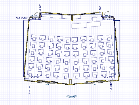 My last project served a much different purpose than the others. The band teacher at the high school is trying to reorganize a storage room for all the student's band equipment. The project was different because she already bought all of the storage units. My responsibility was to recreate the cabinets and rearrange them in the room. I needed to be careful on certain areas of the room already being occupied. I first had to make the custom storage units to import into chief architect. There were three different storage device units known as "UltraStor2" (x4), "UltraStor4" (x5), and "UltraStor5" (x5). I then gave her two designs for possible layouts to see which one she liked more. Her students brought up a potential problem that she didn't consider (percussion). So my final layout leaves a wall to allow for hangers for the percussion equipment. She was very happy with the result and most likely implemented the design as of the summer of 2018.
